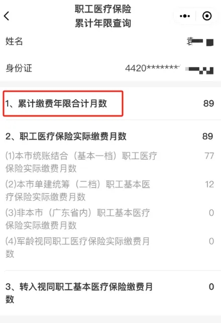 登录“粤医保”微信小程序→我要办事→查看更多→职工医疗保险累计年限查询。如“累计缴费年限合计月数”为300以上,则视为已满25年。(数据仅供参考,以经办前台办理数据为准)